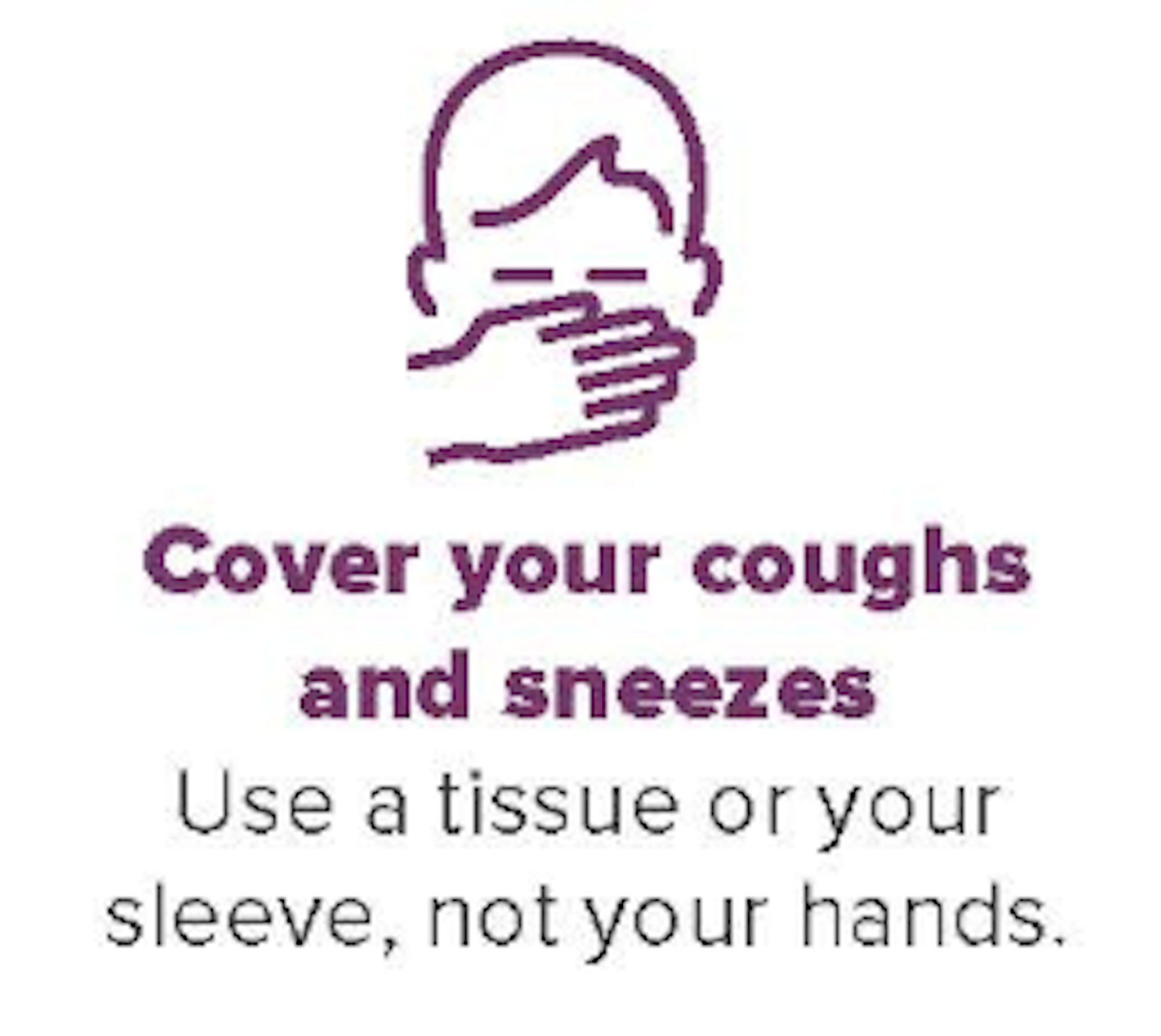 This icon about not coughing into your hand is a guy coughing into his hand. Come on! I'd recommend some new icons here. That one is fatally flawed and the “trouble breathing” icon looks more like a guy who’s got some hot breath after eating some kind of weird food. But the purple here has still won me over. 7/10.